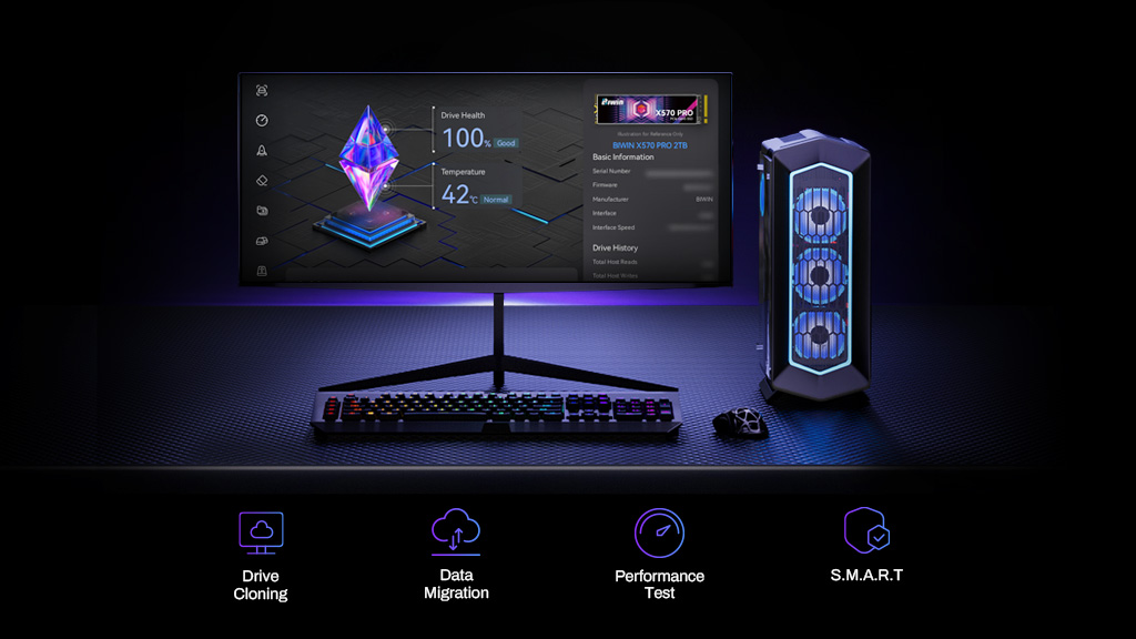 The best way to get an SSD health check is using Biwin Intelligence Software. It works with any brand of SSD or hard drive and can give you clear access to a range of important SSD health data. Biwin Intelligence works as an all-in-one solution for monitoring and managing SSD health, combining error scan, performance test, data migration and other essential drive management tools in a single interface.