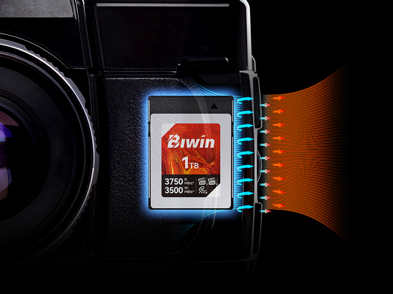 With a PCIe Gen 4×2 interface and CFexpress™ 4.0, this card reaches read speeds up to 3750 MB/s. By reducing wait times for data transfers, Biwin CB500 significantly boosts productivity for photographers and videographers, helping them keep up with the fast pace of professional projects and manage high-resolution footage effortlessly.