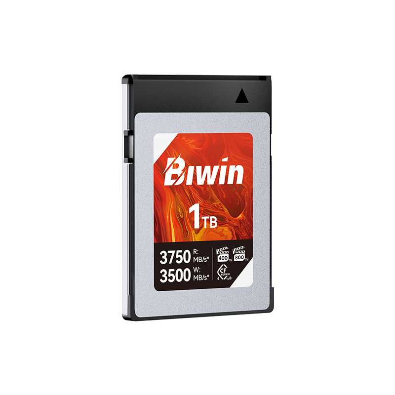 The Biwin Amber CB500 is the world’s first CFexpress™ Type B card to achieve VPG800 certification, ensuring a minimum sustained write speed of 800 MB/s for reliable and consistent performance during long recordings. With read speeds up to 3750 MB/s and write speeds up to 3500 MB/s, the CB500 significantly accelerates data transfer, enabling creators to manage massive files with ease and boost overall productivity.
