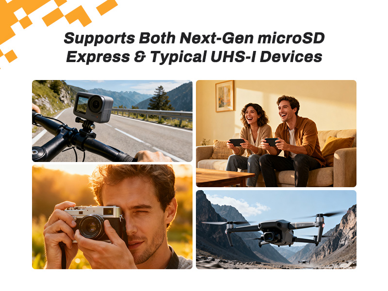 Biwin Amber ME300 microSD Express Card, with a PCIe 3.1 interface and a standard microSD UHS-I interface, is built to make handheld gaming smoother and more immersive. It enables faster game launches, more stable performance in expansive titles, and more consistent responsiveness during intensive sessions. Whether exploring vast landscapes or jumping into competitive matches, ME300 sustains fluid visuals and steady gameplay for the next generation of portable gaming.