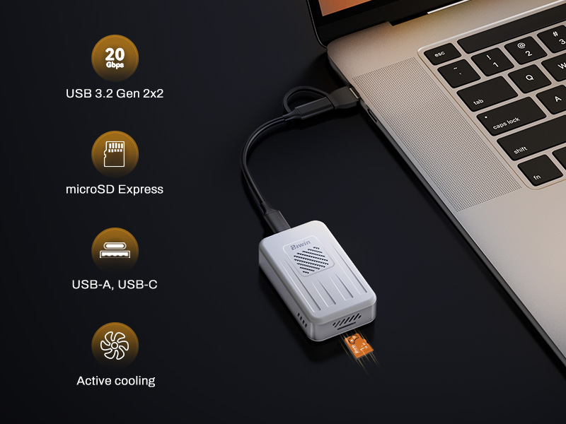A specialized reader is needed to transfer data between a microSD Express card and a device at full Express speeds. The Biwin Amber RE310 microSD Express Card Reader is built to fully leverage the performance of next-generation microSD Express cards. With support for the SD 7.1 specification and high-bandwidth USB 3.2 Gen 2×2 connectivity, it enables more rapid game downloads, faster media transfers, and seamless workflow acceleration with sustained real-world speed. With an efficient thermal design, wide compatibility, and a compact build, the Amber RE310 microSD Express card reader brings more stable, higher-speed performance wherever you work.