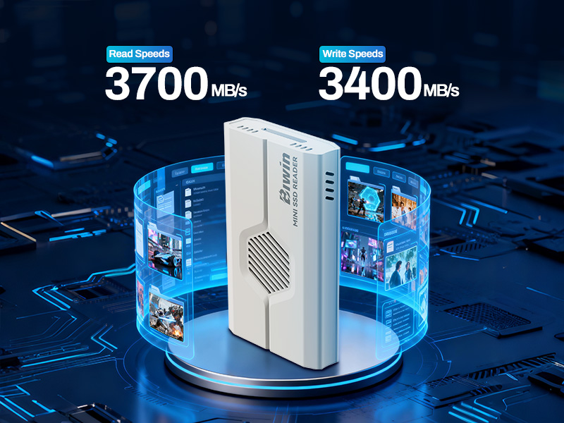 Biwin RD510 Mini SSD Reader is the first high-performance storage reader designed specifically for the compact form factor of Mini SSDs, which are just 15.0 mm × 17.0 mm × 1.4 mm in size. It delivers 3700 MB/s read and 3400 MB/s write speeds, a perfect match for large file transfers and professional applications that demand high-speed storage. For versatility and ease of use, the Biwin RD510 ships with a USB 4.0 Type-C to Type-C cable, ensuring compatibility with various devices and unlocking the full potential of Mini SSDs.