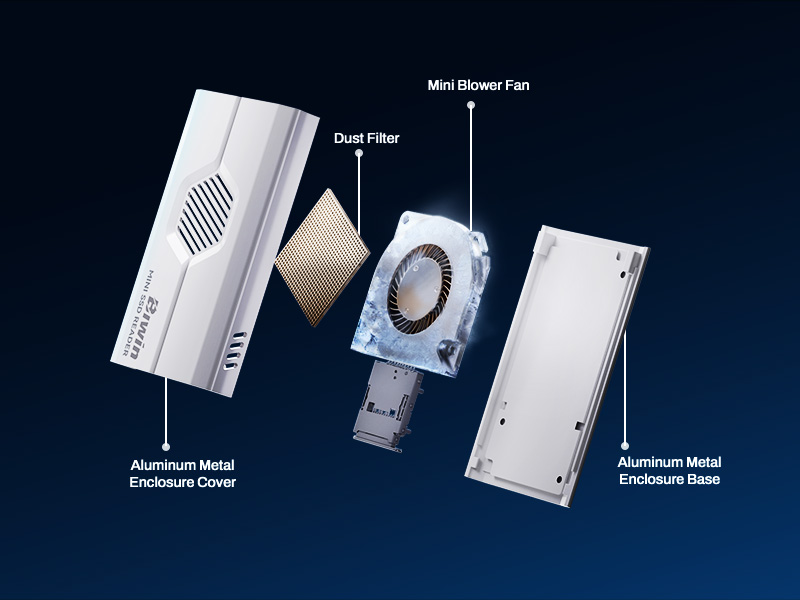 The Biwin RD510 is built with robust construction for daily use while maintaining a sleek, professional appearance. Its built-in cooling fan offers efficient heat management, preventing overheating and maintaining stability during prolonged, high-speed data transfers. With enhanced protection and thermal efficiency, the RD510 offers stable and uninterrupted operation, extending the lifespan of your Mini SSD.